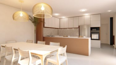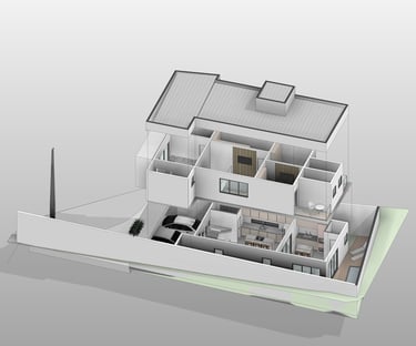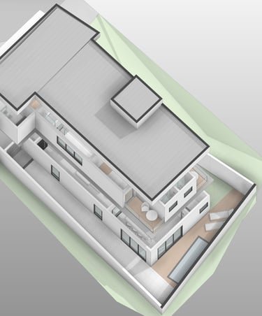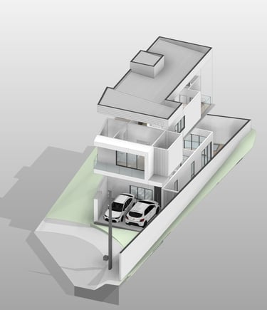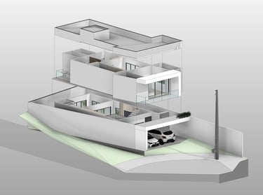 Além disso, atendemos às necessidades específicas do cliente, priorizando o aproveitamento inteligente do terreno e a circulação funcional entre os ambientes.